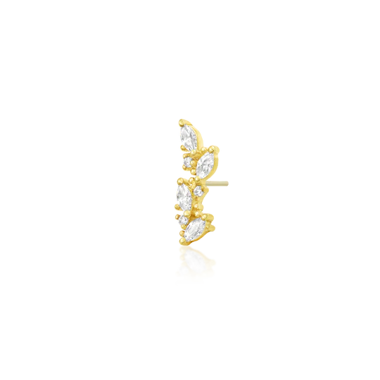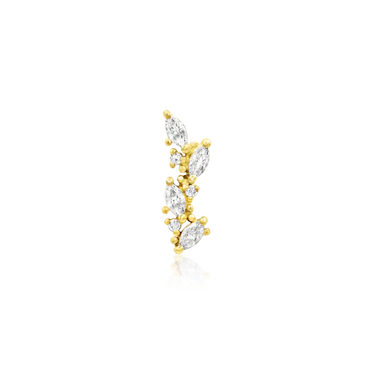 Dieser Aufsatz vereint rund geschliffene Zirkonia mit Zirkonia im Marquise Schliff und bildet eine funkelnde Blütenranke, die sich wunderschön am Ohr entlang legt.