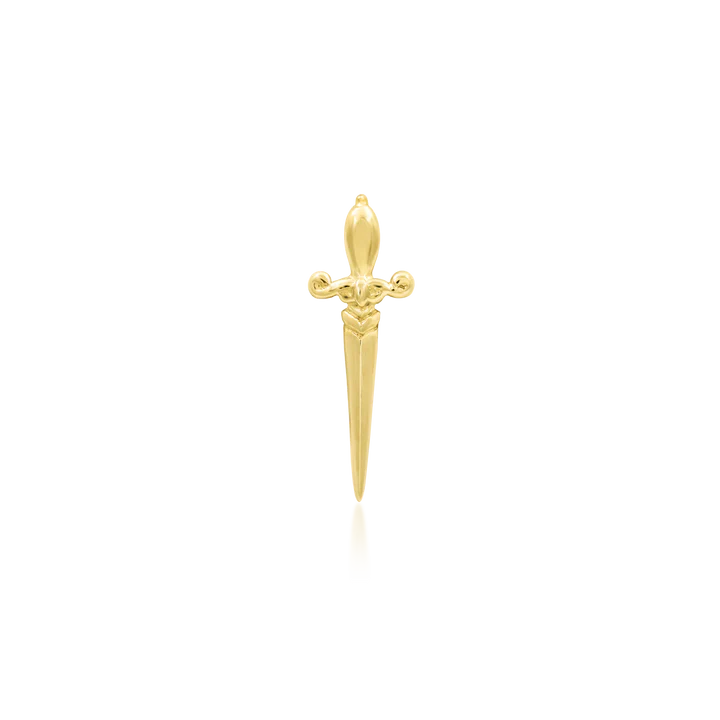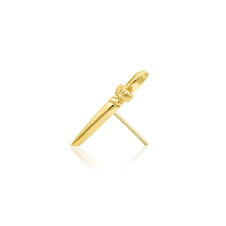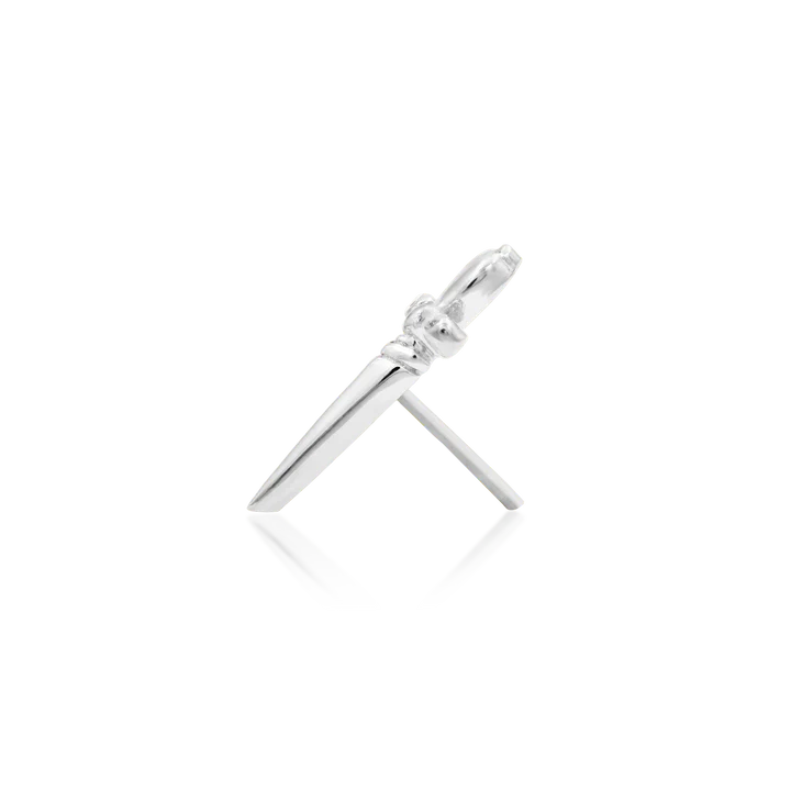 Looking Sharp ist ein Aufsatz, der durch Old School Tattoos inspiriert ist. Dieser schmale Dolch mit der filigranen Ausarbeitung und auf Hochglanz polierten Oberfläche passt durch das Design auch an schmalere Stellen wie ein Mid-Helix oder Forward Helix.