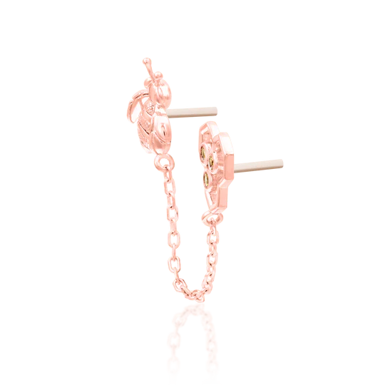 Dieses außergewöhnliche Set von einer Biene und einer Honigwabe ist ein wahrer Hingucker! Die durch die Kette verbundenen Aufsätze können zum Beispiel in zwei Ohrlöchern oder zwei Helix Piercings getragen werden oder auch ein Conch- und ein Helix Piercing verbinden.